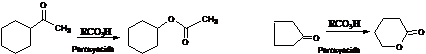 4. Baeyer-Villiger Oxidation:- Ketones are oxidized to esters , cyclic ketones to lactones and aldehydes to acids with Peroxy acids as CH3COOOH.