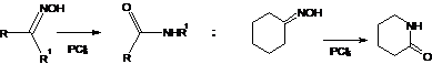 5. Beckmann Rearrangement; In acidic medium Oximes uudergoes rearrangement to form isomeric amides. Oximes of cyclic ketones give ring enlargements: