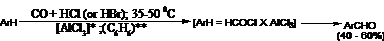 26. Gatterman-Koch Reaction: Formylation of aromatic hydrocarbons with CO and HCl and in the presence of Lewis' acids. The reaction also takes place with condensed polycyclic hydrocarbons, but phenoles do not react.