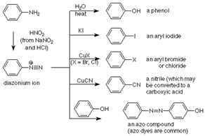 27. Griess Diazo Reaction;-Formation of aromatic diazonium salts from primary aromatic amines and NaNO2+HCl or nitrous acid at ice cold temperature of 0-50 C.