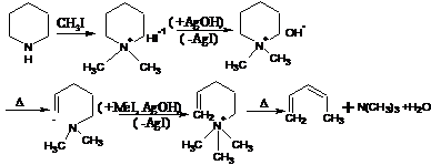 methylation, is a process where an amine is reacted to create a tertiary amine and an alkene by treatment with excess methyl iodide followed by treatment with silver oxide, water, and heat.