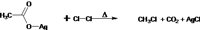 34. Hunsdiecker Reaction (Borodine Reaction)- Silver salts on thermal decarboxylation in the presence of halogens gives organic halides.