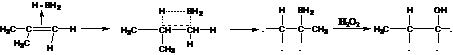 35. Hydroboration Reaction-Addition of boron hydrides to alkenes, allenes, and alkynes to form organoboranes, such that boron adds to the less substituted carbon. Attack usually takes place on the less hindered side in a cis fashion: