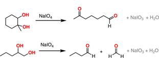 39. Malaprade Reaction (Periodic Acid Oxidation)-Compounds containing two hydroxyl groups, or a hydroxyl and an amino group, attached to adjacent carbon atoms, undergo cleavage of the carbon-carbon bond when treated with periodic acid to yield aldehydes: