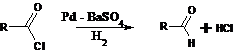47. Rosenmund Reduction-Catalytic reduction of acid chlorides to aldehydes. To prevent further hydrogenation a poison is added to the catalyst: