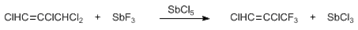 55. Swarts Reaction:-Fluorination of organic polyhalides with antimony trifluoride (or zinc and mercury fluorides) in the presence of a trace of a pentavalent antimony salt: