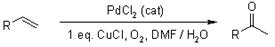 60. Wacker Oxidation:-The oxidation of ethylene to acetaldehyde employing palladium chloride and cupric chloride as catalysts and molecular oxygen as oxidant. The reaction has been extensively developed for the oxidation of terminal alkenes to methyl ketones: